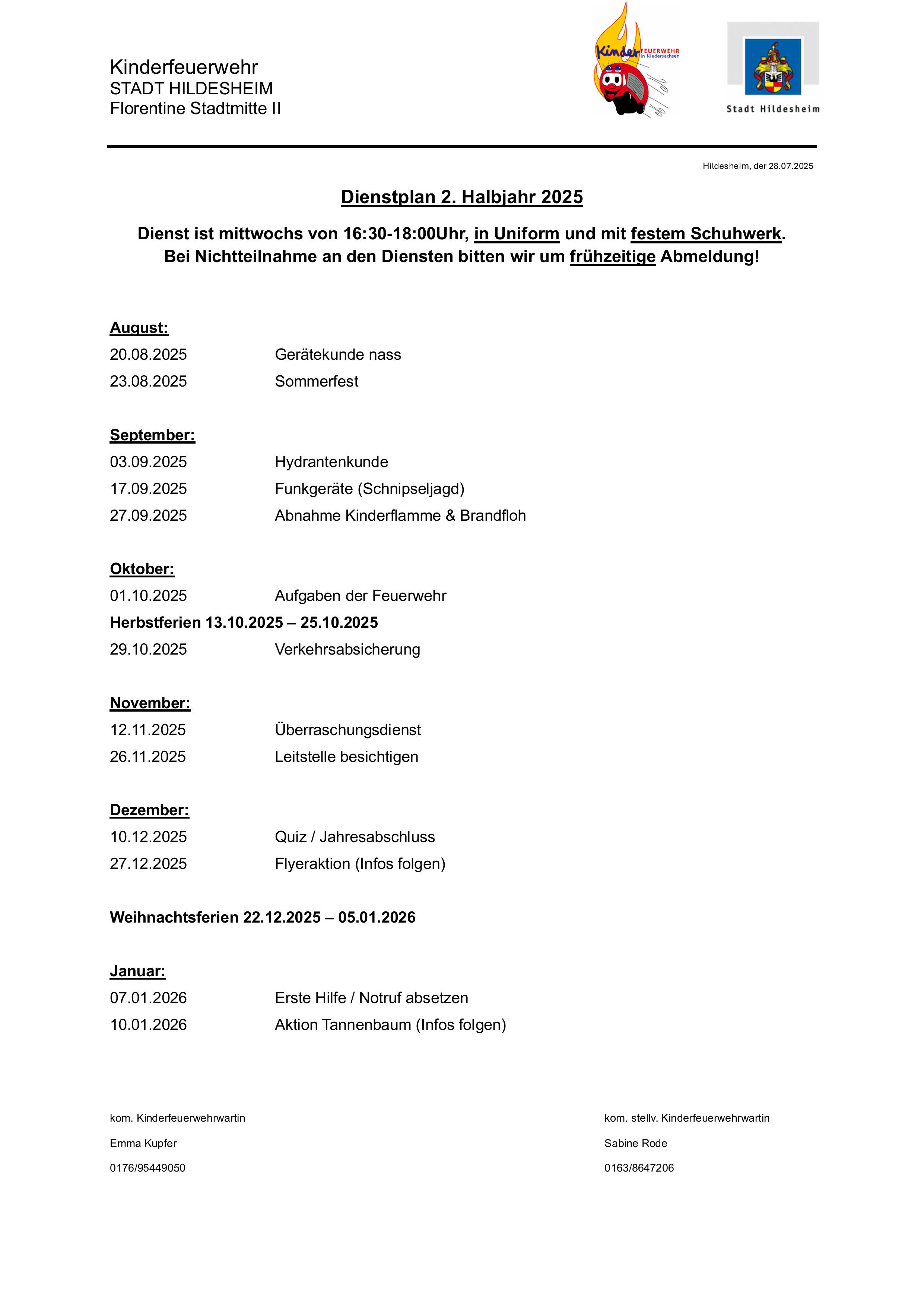 Dienstplan JF